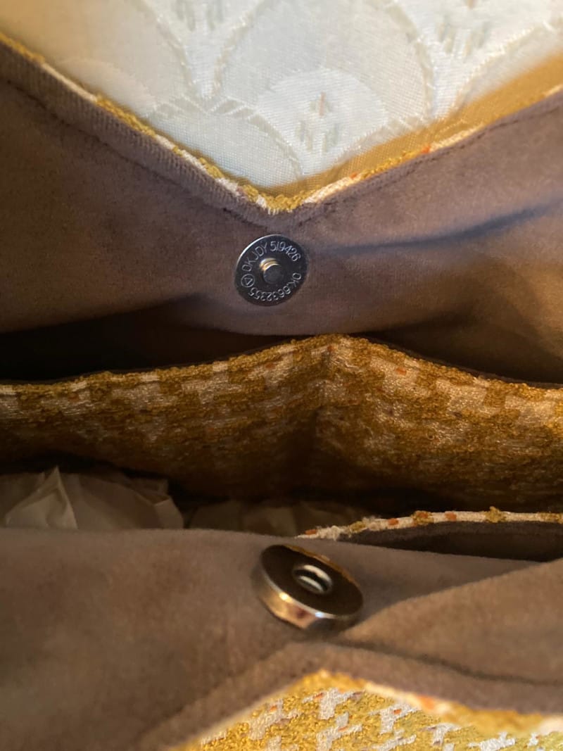 • Exterior Fabric: A combination of ochre and cream, with very subtle flecks of other colours like burnt orange and lilac within the weave.