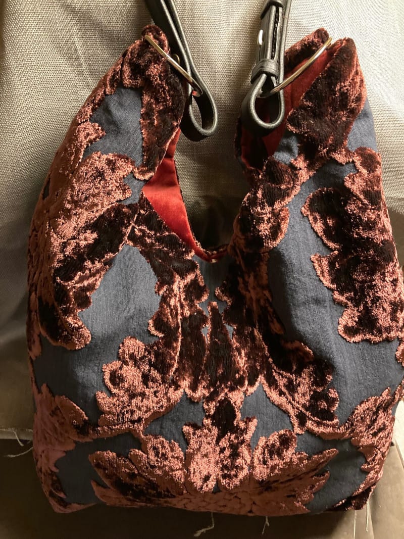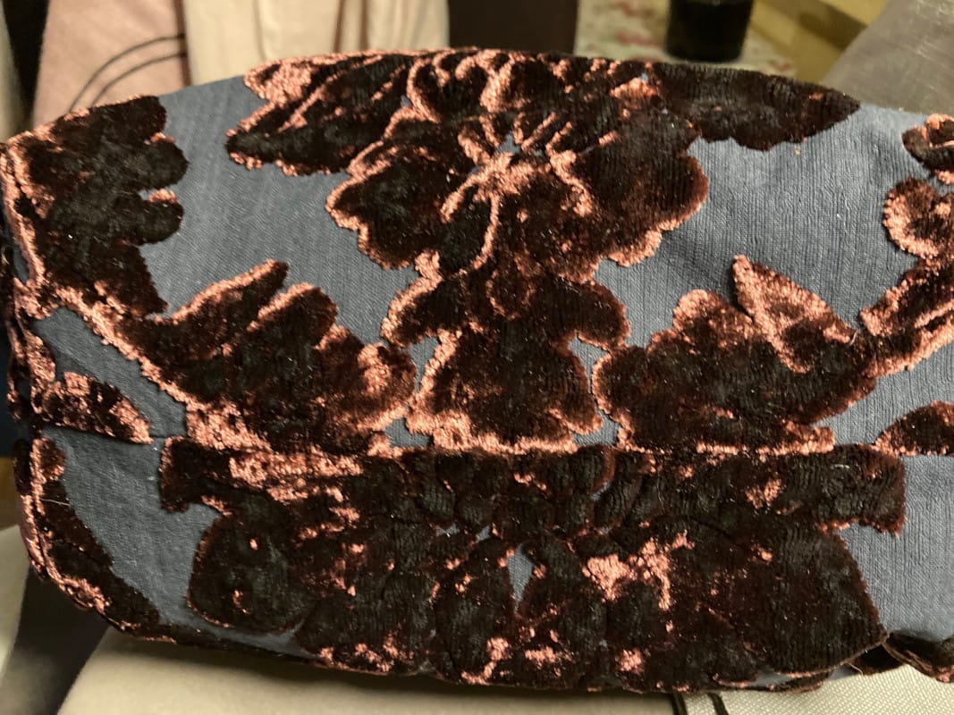Beautiful sumptuous velvet, deep burgundy (apparently this colour is on trend!) and grey.