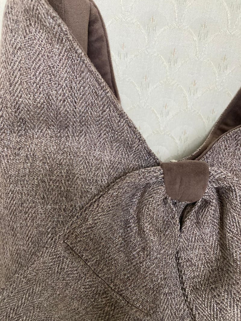 - Fabric: A beautiful brown wool with a herringbone pattern. This classic fabric gives the bag a tailored, elegant, and durable finish—perfect for a traveller.